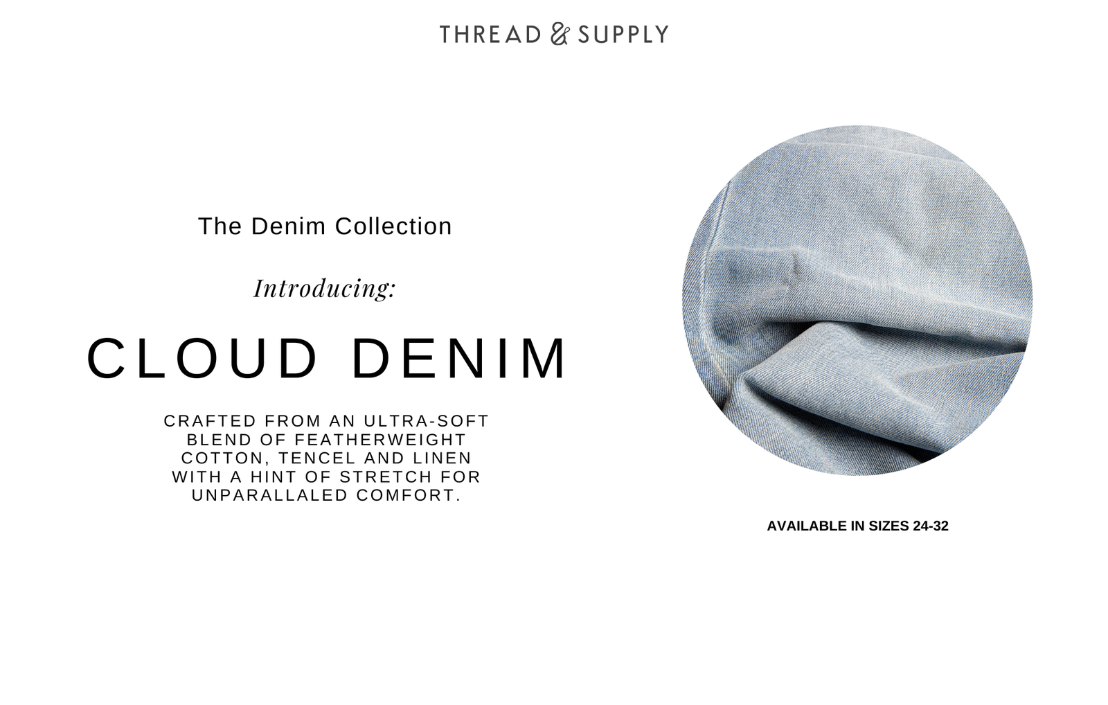 Explore our newest denim collection designed in three hero fabrics: Cloud Denim, Vintage Stretch Denim and Terry Denim